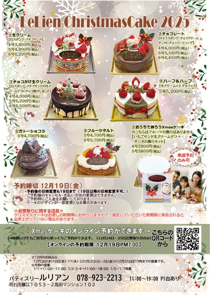 ご予約は店頭もしくはインターネットでのご予約をお願いいたします。(24日25日のみ)※お電話でのご予約は承っておりません。店頭・オンライン共にご予約の状況によっては期限より早く受付を終了させていただく場合がございます。